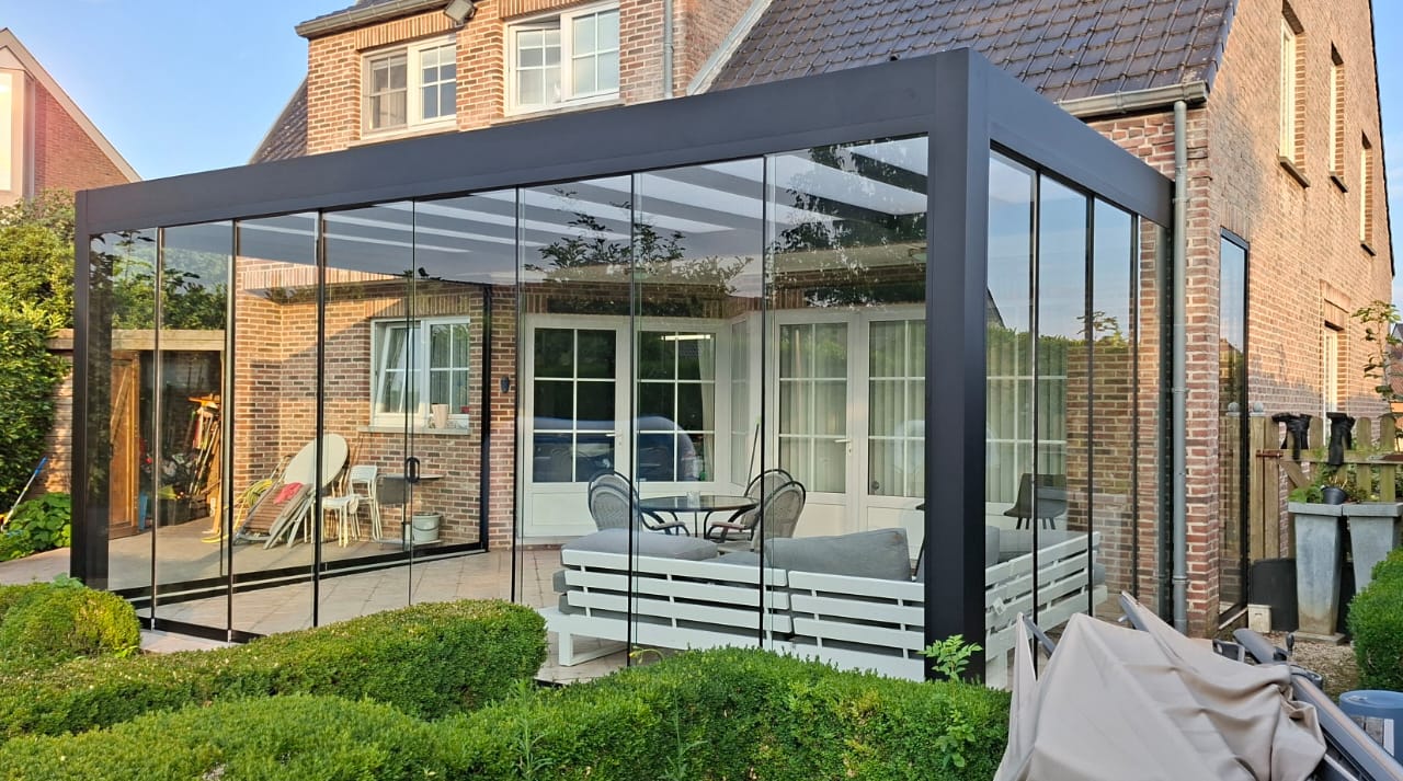 Transformeer uw terrasoverkapping tot een volwaardige tuinkamer. Onze glazen schuifwanden bieden bescherming tegen de elementen zonder het open karakter van uw tuin te verliezen.